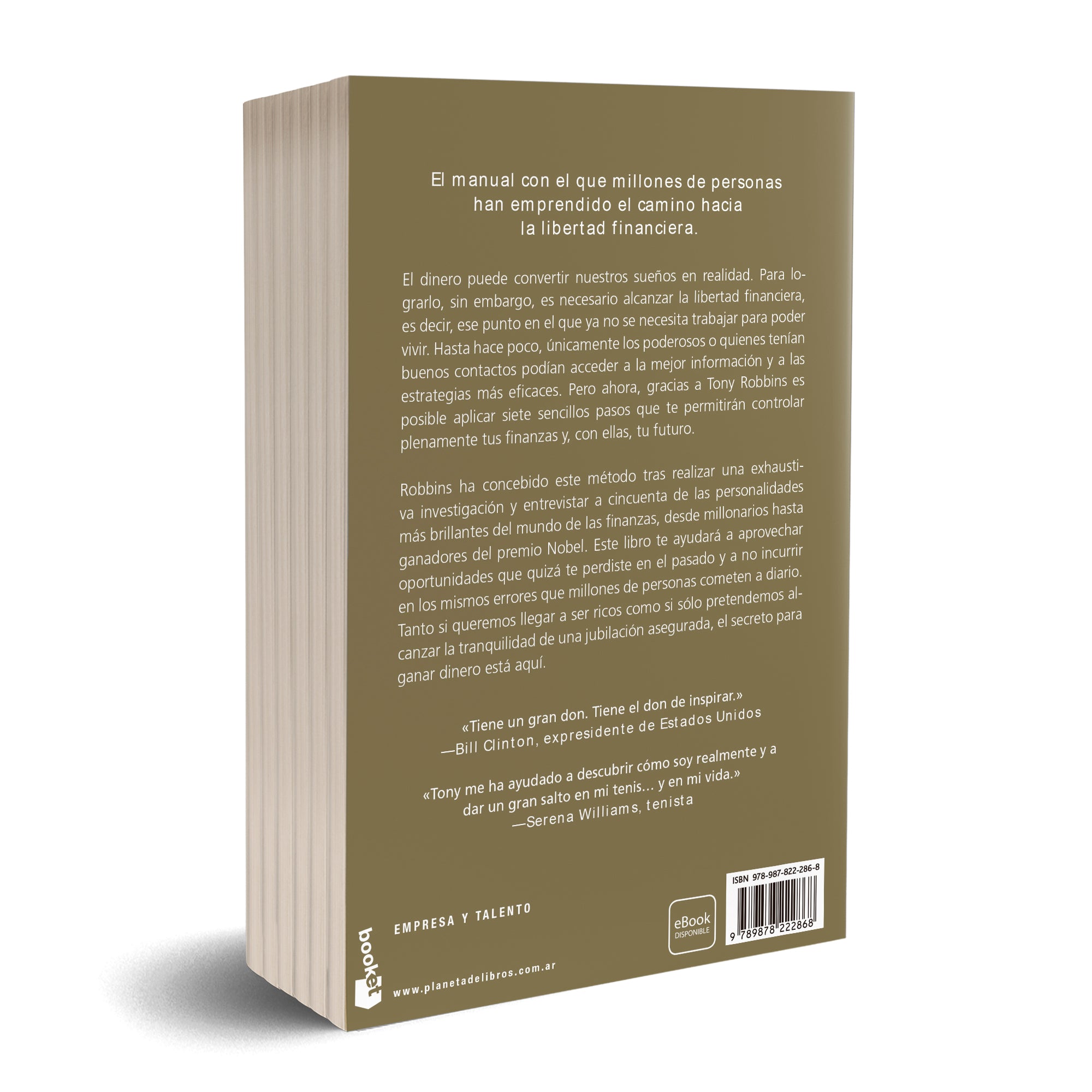 El dinero puede convertir nuestros sueños en realidad. Para lograrlo, sin embargo, es necesario alcanzar la libertad financiera, es decir, ese punto en el que ya no se necesita trabajar para poder vivir. Hasta hace poco, únicamente los poderosos o quienes tenían buenos contactos podían acceder a la mejor información y a las estrategias más eficaces. Pero ahora, gracias a Tony Robbins es posible aplicar siete sencillos pasos que te permitirán controlar plenamente tus finanzas y, con ellas, tu futuro. Robbins ha concebido este método tras realizar una exhaustiva investigación y entrevistar a cincuenta de las personalidades más brillantes del mundo de las finanzas, desde millonarios hasta ganadores del premio Nobel. Este libro te ayudará a aprovechar oportunidades que quizá te perdiste en el pasado y a no incurrir en los mismos errores que millones de personas cometen a diario. Tanto si queremos llegar a ser ricos como si sólo pretendemos al-canzar la tranquilidad de una jubilación asegurada, el secreto para ganar dinero está aquí.