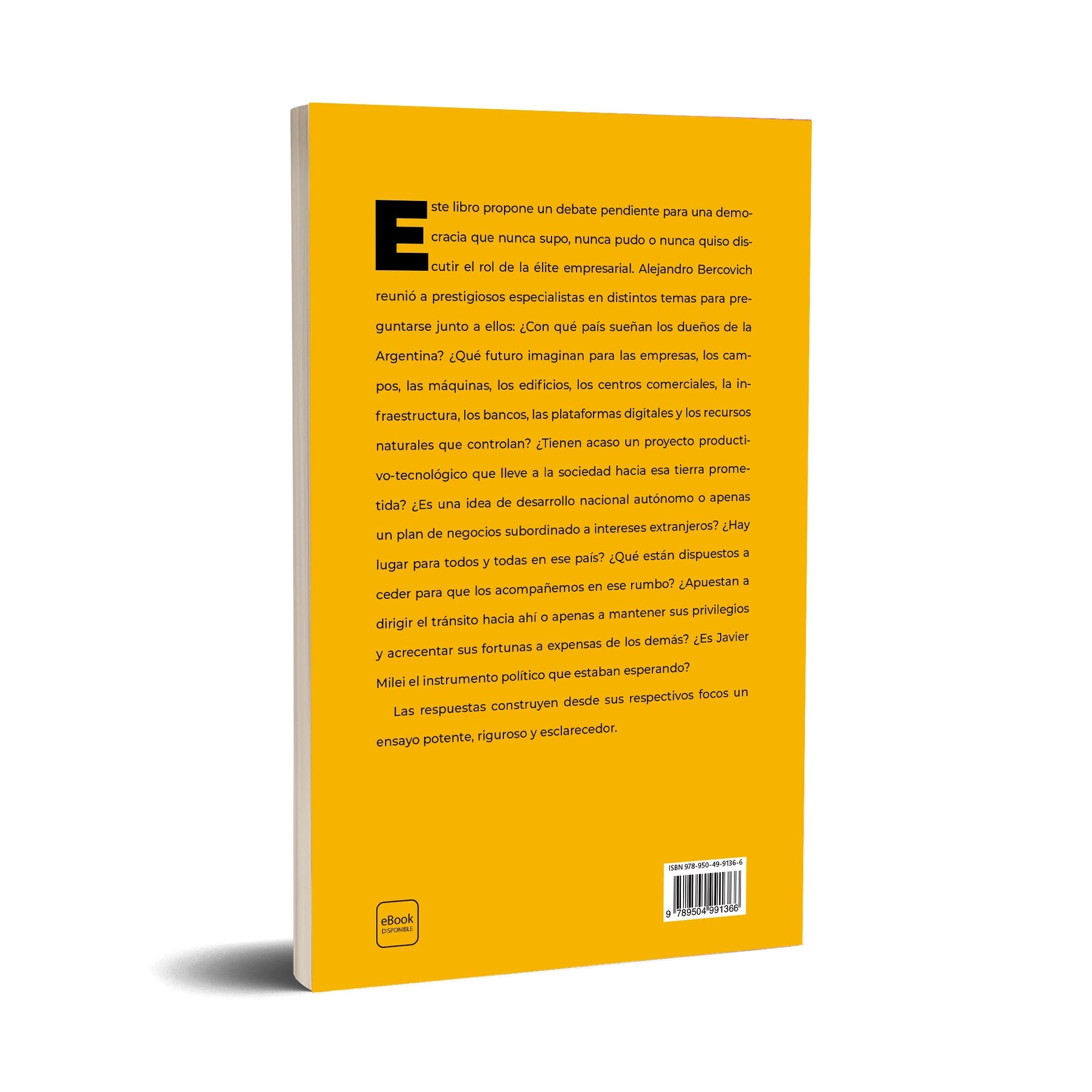 Este libro propone un debate pendiente para una democracia que nunca supo, nunca pudo o nunca quiso discutir el rol de la élite empresarial. Alejandro Bercovich reunió a prestigiosos especialistas en distintos temas para preguntarse junto a ellos: ¿Con qué país sueñan los dueños de la Argentina? ¿Qué futuro imaginan para las empresas, los campos, las máquinas, los edificios, los centros comerciales, la infraestructura, los bancos, las plataformas digitales y los recursos naturales que controlan? ¿Tienen acaso un proyecto productivo-tecnológico que lleve a la sociedad hacia esa tierra prometida? ¿Es una idea de desarrollo nacional autónomo o apenas un plan de negocios subordinado a intereses extranjeros? ¿Hay lugar para todos y todas en ese país? ¿Qué están dispuestos a ceder para que los acompañemos en ese rumbo? ¿Apuestan a dirigir el tránsito hacia ahí o apenas a mantener sus privilegios y acrecentar sus fortunas a expensas de los demás? ¿Es Javier Milei el instrumento político que estaban esperando? Las respuestas construyen desde sus respectivos focos un ensayo potente, riguroso y esclarecedor.